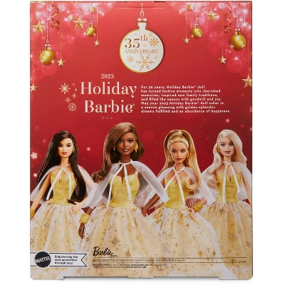 - Celebrate the most festive time of year with Barbie! Marking the 35th anniversary of Holiday Barbie, this elegant doll shines with all the good will and brightness of the season.