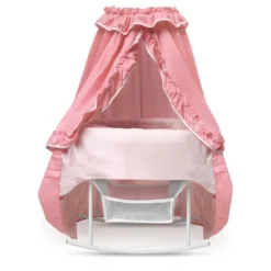 Badger Basket Royal Carriage Metal Doll Bed With Canopy Bedding And LED Lights – Pink/White/Stars