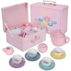 Jewelkeeper Porcelain Tea Party Set For Little Girls – Polka Dots – 13 Pieces
