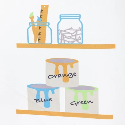 - Colorful fabric cabinets feature doors (removable with hook and loop tape) that reveal plenty of storage space inside. Includes light, non-weight bearing shelf on back wall for light objects and pretend play