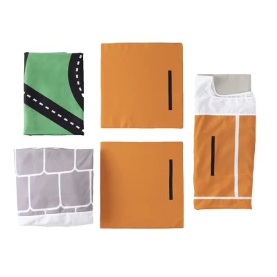 - Spacious 44″L x 44″W x 50″H polyester play tent with sturdy plastic poles has tie-back doors, open windows on the side, and a colorful floor with a road pattern