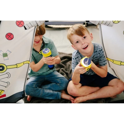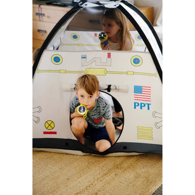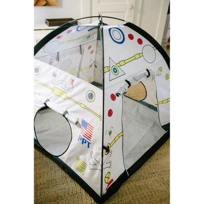 5, 4, 3, 2 1 Blast Off! Climb into your very own “Space Module” for interplanetary exploration. Comes complete with 2 roll up “hatch flaps” for secret access. You can “dock” with our “Space Dome and Lunar Tube” combination (item # 40210 sold separately) via the hatch as well. Exciting graphics make this a real life play experience. This “Space Module” has a roll up entry door for easy passage
