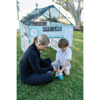 Your little scientist now has a lab they can call their own: Our Science Center Play House! This huge lab measures 48” x 38” x 48” and comes complete with fun graphics to make your kiddo feel like a real scientist. The No-See-Um Mesh allows for great airflow indoors and out, while the double-stitched seams along stress points, radius-cut hook and loop tape to prevent cuts and scrapes, and Super Poles to prevent splintering or shattering ensure safety and durability. Let the experiments begin!