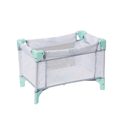 The baby doll Folding Crib from Perfectly Cute is the ultimate place for baby doll play and nap time! Mindfully designed for imaginative, nurturing pretend-play, this adorable pastel stars & mesh folding crib collapses easily for storage and portable play. Fits most standard baby dolls up to 18 inches. Durable & super easy-to-clean!
