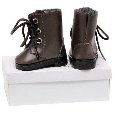 - High quality 1800’s brown “lace up” vinyl boots, handcrafted of high quality safe material and made with molded soles like real shoes. Includes authentic looking shoe box.